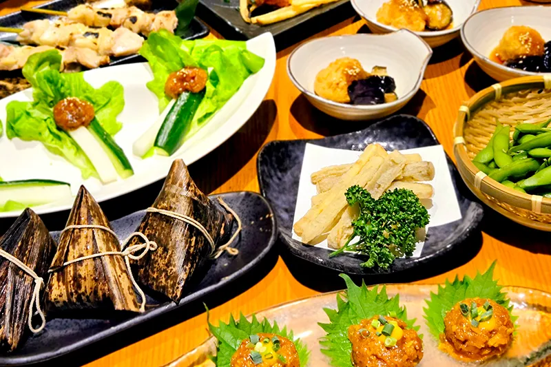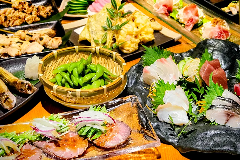 市場仕入れのお刺身や天ぷら、当店こだわりの焼き鳥を中心にデザートも付いたボリューム満点のコースです。